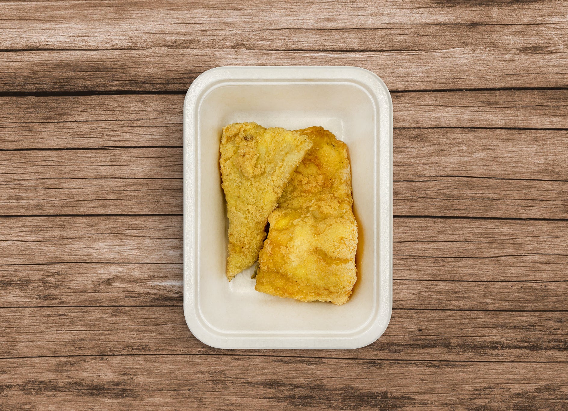 Preparazione Gastronomica: ingredienti: MERLUZZO 80% (Godus Morhua), farina di GRANO tenero tipo 00, tuorlo d'UOVO, olio di semi di girasole.